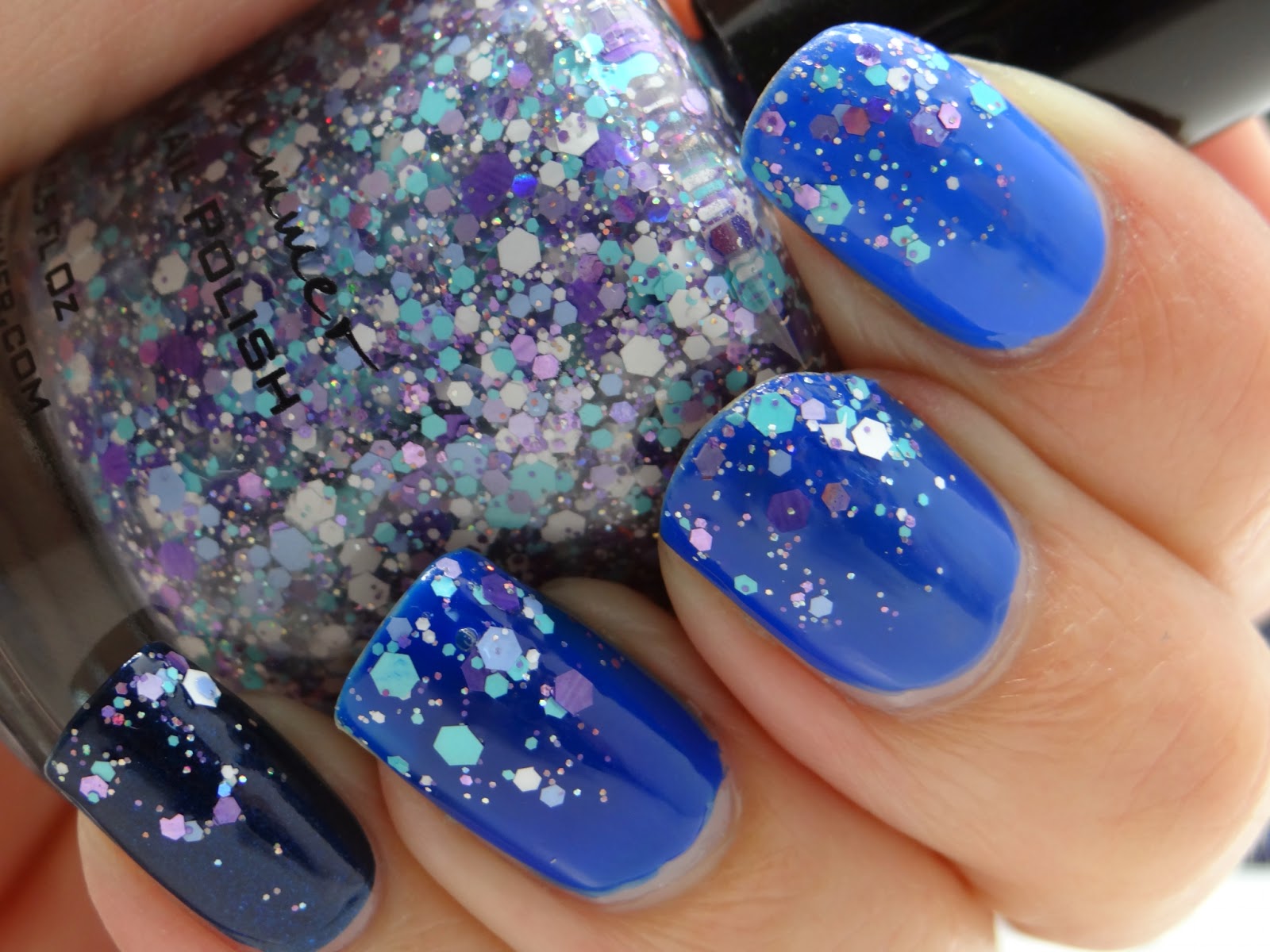 le swatch d'un top-coat pailleté, l'ombré est vraiment intéressant,
